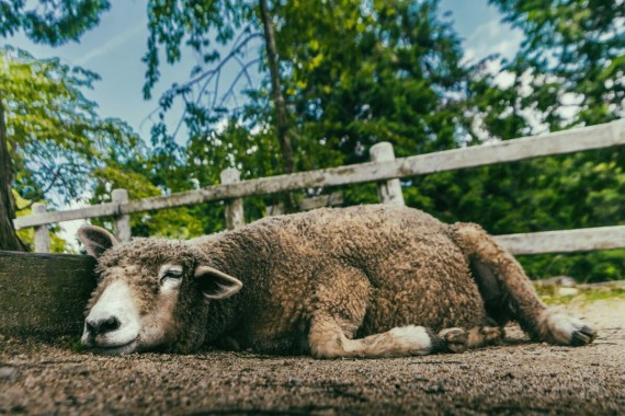 If this sheep could be laughing while sleeping, she would.